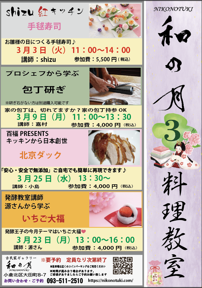 和の月で、各地域で活躍中の講師をお招きして「和の月料理教室」を開催します!