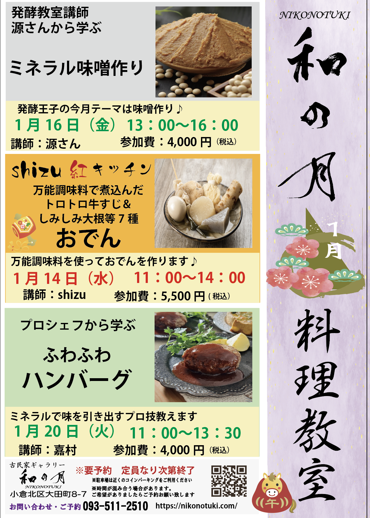 和の月 イベント 和の月 料理教室 / 2025年12月29日 和の月で、各地域で活躍中の講師をお招きして「和の月料理教室」を開催します! 是非、料理に興味のある方や技を学びたい方・・お待ちしております。 準備の関係で、開始3日前には予約をお願いします。 定員になりましたら受付終了になりますのでご了承ください もっと読む