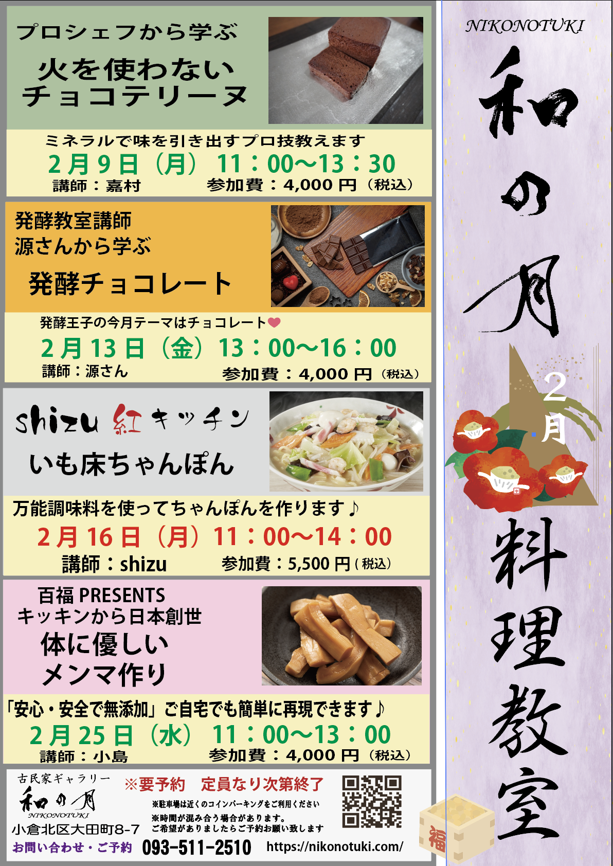 和の月 イベント 和の月 料理教室 / 2025年1月29日 和の月で、各地域で活躍中の講師をお招きして「和の月料理教室」を開催します! 是非、料理に興味のある方や技を学びたい方・・お待ちしております。 準備の関係で、開始3日前には予約をお願いします。 定員になりましたら受付終了になりますのでご了承ください もっと読む